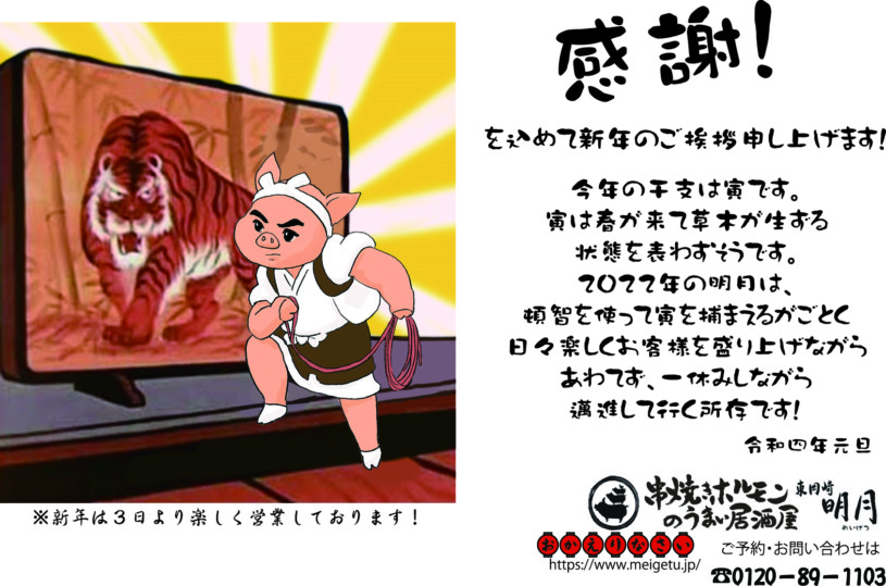 また9日(日)、10日(月)は連休をいただきます。2022年寅年は私自身も年男でございます。